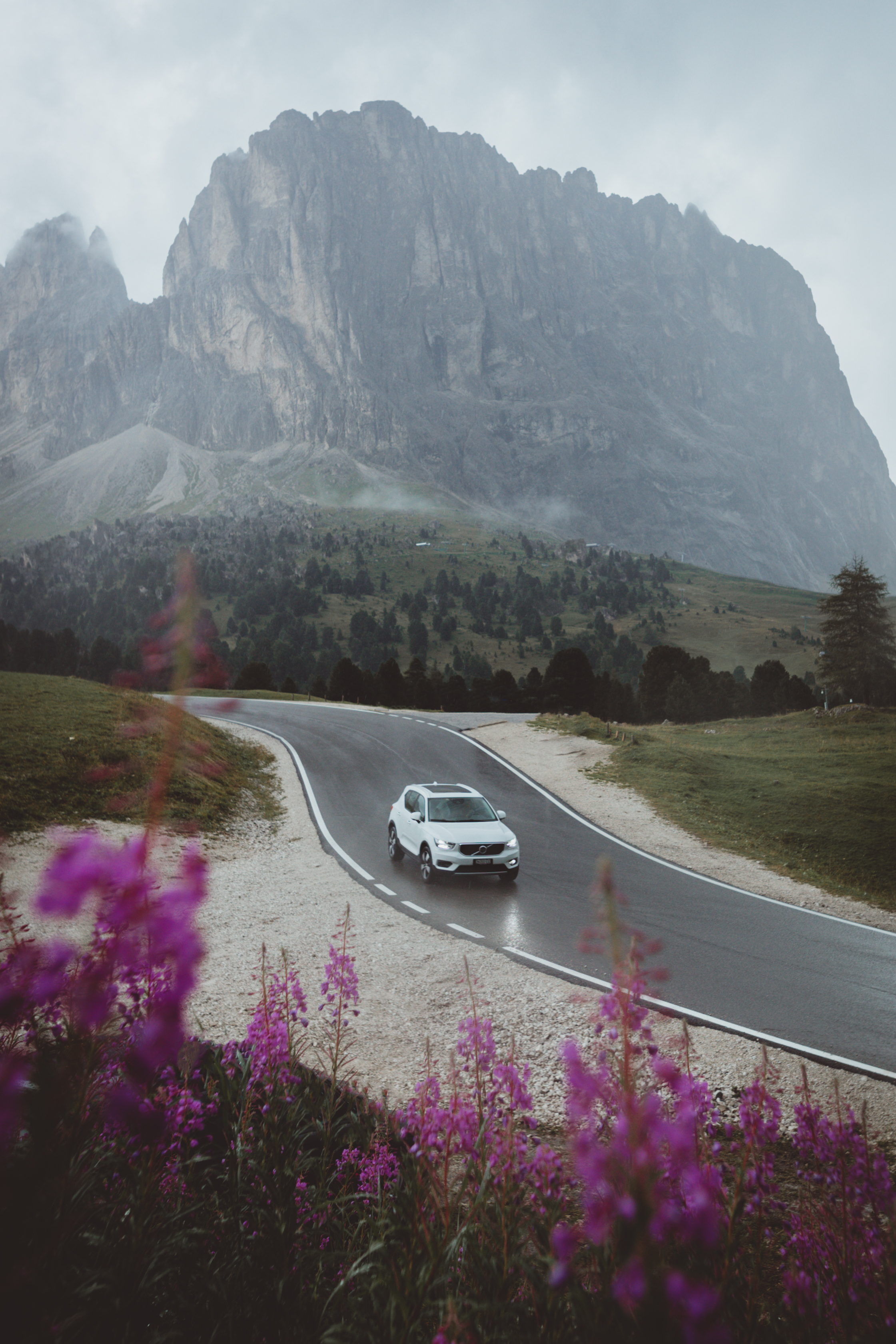 Driving through Passo Giau in our Volvo XC40